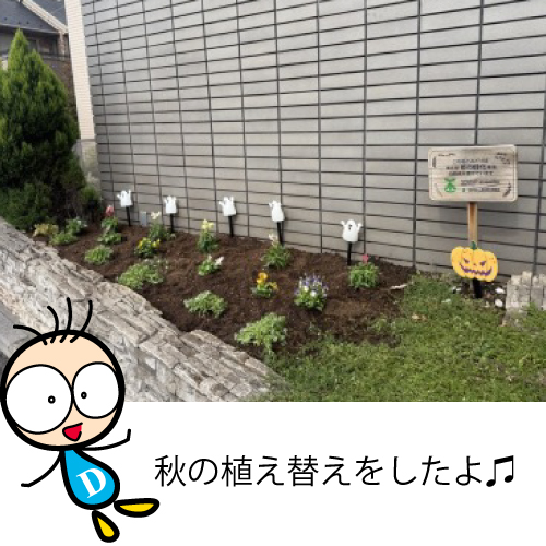 今日は、園芸部の活動報告だよ。先日、秋の植え替えを行いました♪