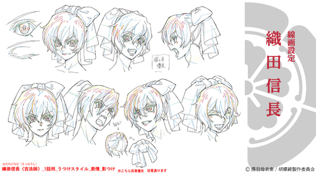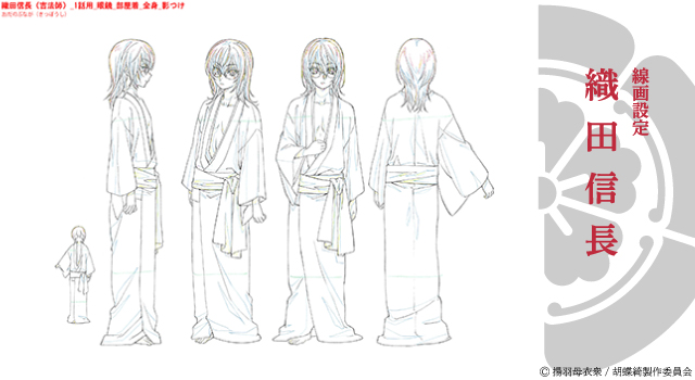「胡蝶綺 ~若き信長~」はオリジナルアニメーションということもあり手探りしながらの「ゼロ」からの出発でした。現場スタッフの声をお届けいたしましたが、まだまだスタッフの思いの詰まったものがあります。キャラクターの線画設定をはじめ各種設定もそのひとつです。スタッフが作り上げたこだわりの設定を大公開いたします。